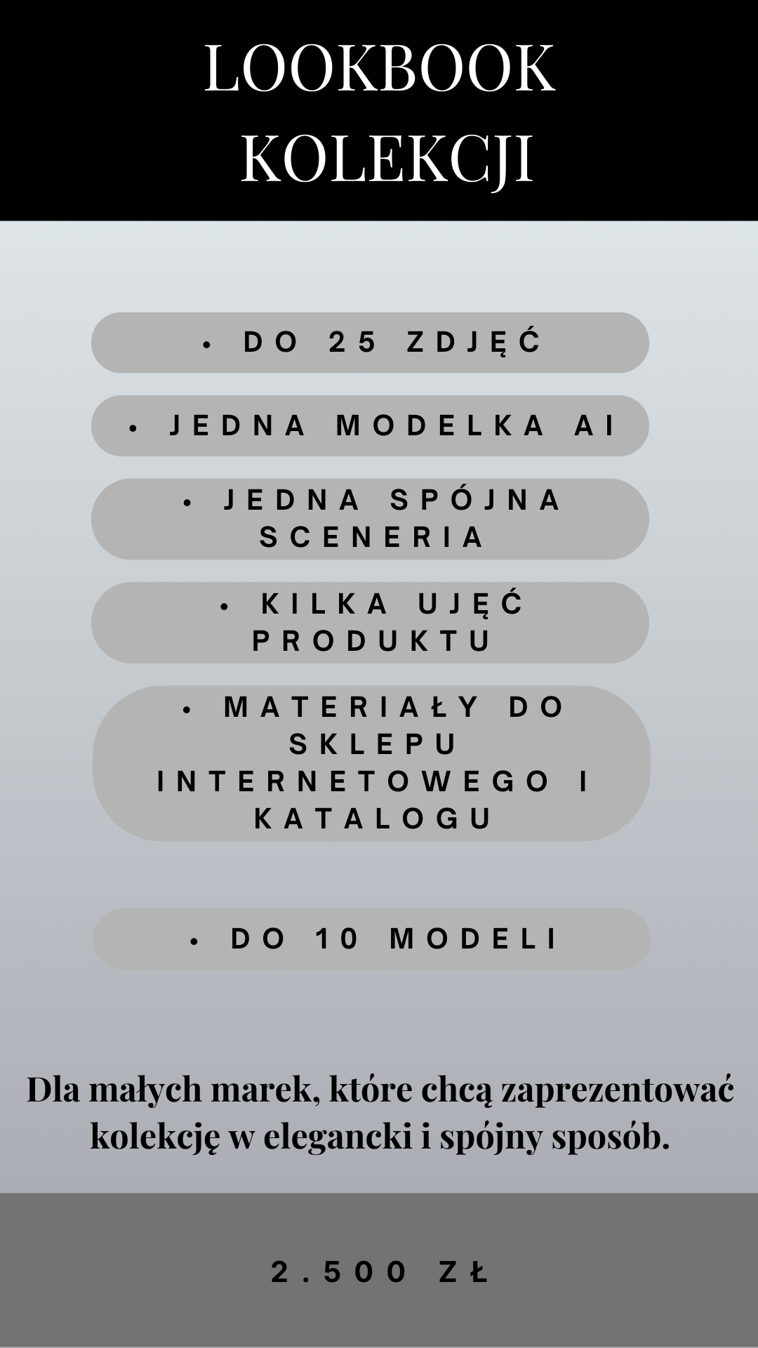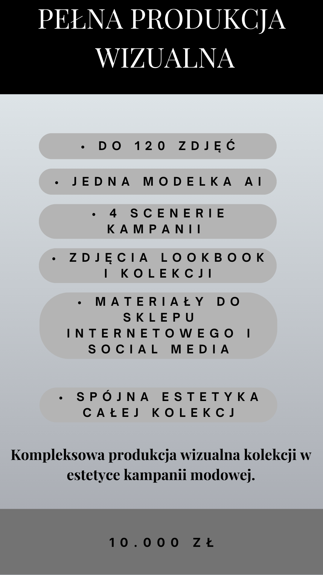 W EllAI Studio tworzymy materiały wizualne dla marek modowych, które chcą prezentować swoje kolekcje w elegancki i profesjonalny sposób bez konieczności organizowania tradycyjnych sesji zdjęciowych.